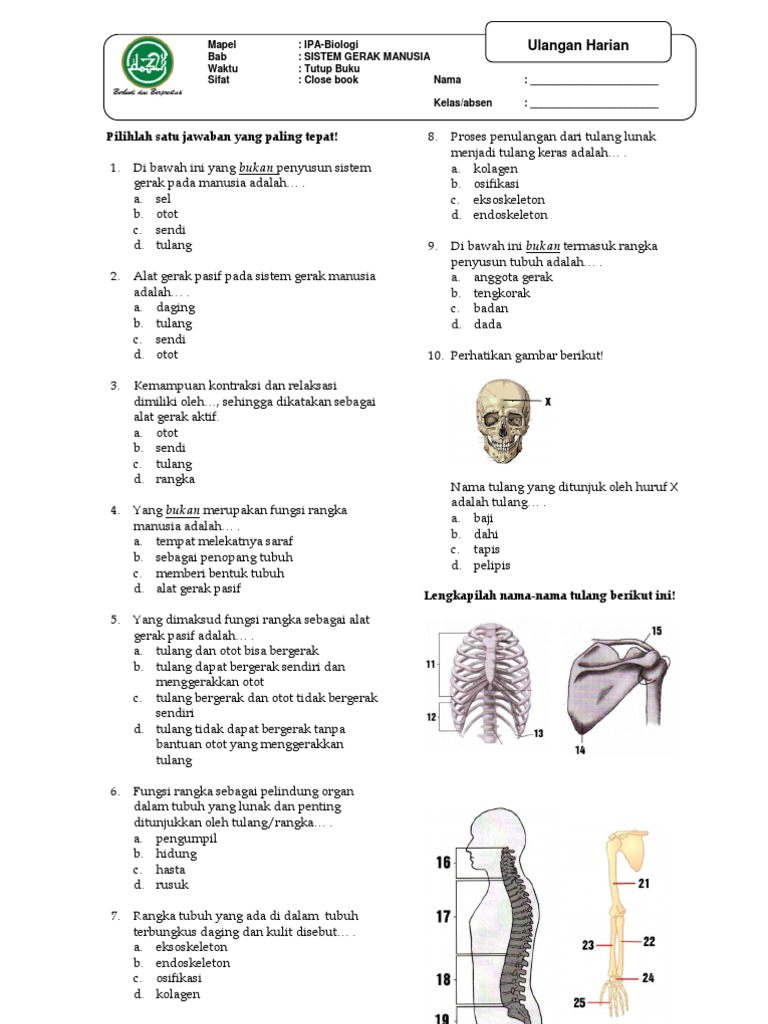 Kumpulan soal dan jawaban sistem gerak biologi kelas xi.
